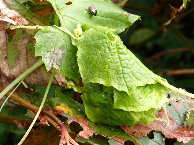 薮の上前に生える他の植物の葉の上を利用したgreen houseを作っている。