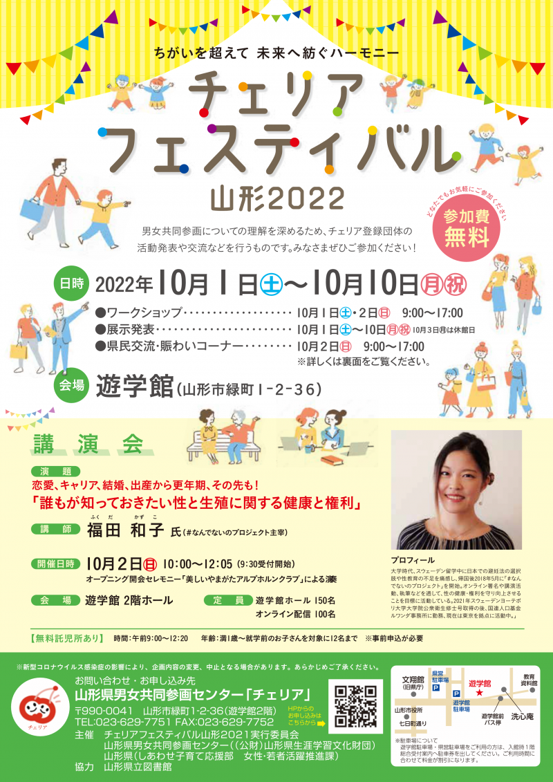 この度は、出演の機会をチェリアフェス実行委員会に繋いでくださった山形市市民活動支援センターの有川さんはじめ、チェリア山形の事務局の皆様にお世話になりました。