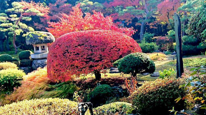 ●ひと雨ごとに秋が深まってきます 昨日から雨が降り気温のもなり低くなってきました 先日の秋晴れの日に日本庭園で真っ赤に色づいたドウタンつつじを見てきました 素晴らしい日本庭園に思わず息をのむような美しさでした