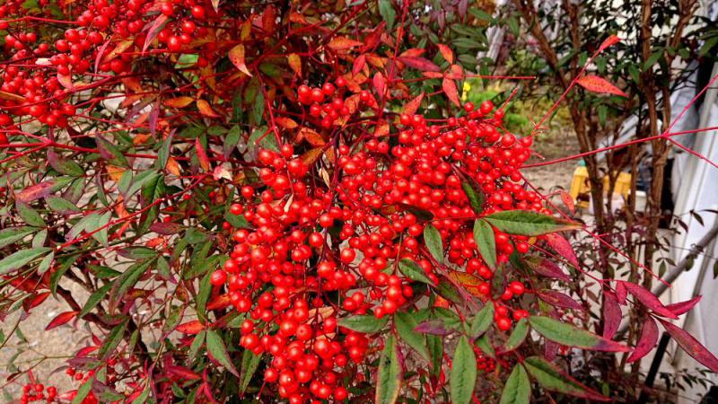 ●友人宅の庭に真っ赤に色づいた「ナンテン」の実がありました あまりの赤いナンテンの実に思わずカメラを向けました 雪が降る頃まで実っており白い雪と真っ赤なナンテンの実のコントラスは格別です 縁起の良いナンテンは正月によく飾られる実の一つですがそんなことが話題になる季節となりました