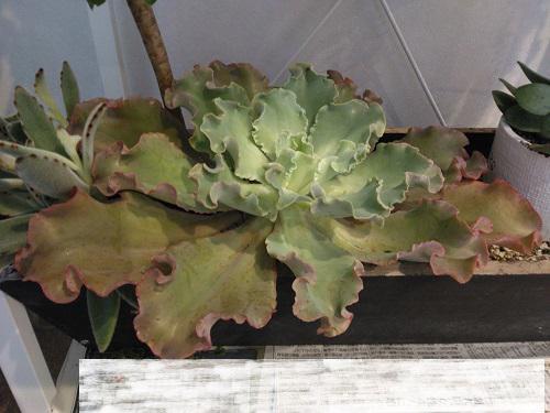 今日、長井の最低気温は今季一番の冷え込みでマイナス7.1℃、、、夜半からまた寒くなりそうです!雪が降らないだけ感謝・・・じーじは運動不足で体重が増えた〜なんて嘆いています!除雪は運動不足解消になるようです。 花ネタは変わらず何にもないので・・・今日は、多肉植物エケベリア『高砂の翁』の出番です!(トップ写真)去年から始めた多肉植物は我家の2階に取り込んでいます。まだ、寒さに負けず持ちこたえています! 多肉のことは全然わからず買い集めたばーばですが・・・購入時はさほど大きくなく、まさかこんなに成長するなんて、ビックリ! 葉の先端も大きくフリルに。育てがいがあり気に入っています(^^)と言っても、何もしないのに勝手に成長!このボリューム感、華やかさと存在感。。。春になったらどんな器に植え替えしたらいいか思案中デス。2年目、上手く成長してくれればいいのですが。先日花ショップに一鉢残っていたので明日、買いに行ってみようかな? ↓5月購入時、お値段もお手頃価格でした。 ↓成長がわからなっかったので、こんな感じで植栽。 ↓10月取り込みする時はあまりにも大きくなってしまいガゼボに打ち付けていた木箱を外すのに苦労してしまいました。(作業はじーじ) NHKテキスト『趣味の園芸』1月号は"冬の多肉植物"の特集だったので購入しました。他にも購入した本があるのですが、いつも購入して満足してしまうばーばです春まで少し勉強してみましょう〜