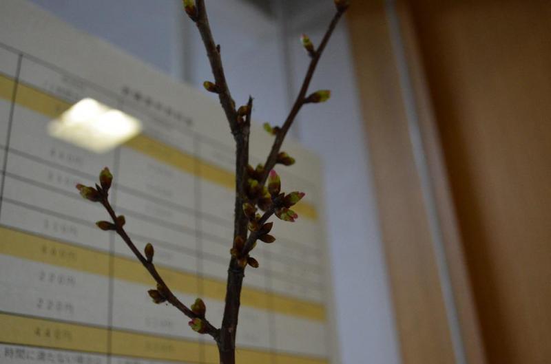 桜を頂戴しました。啓翁桜かな?と思ったらご自宅のお庭にある桜だそうです。折れてしまったんだそうです。ちょっとピンクに芽吹いていて数日前の暖かさを思い出しました。