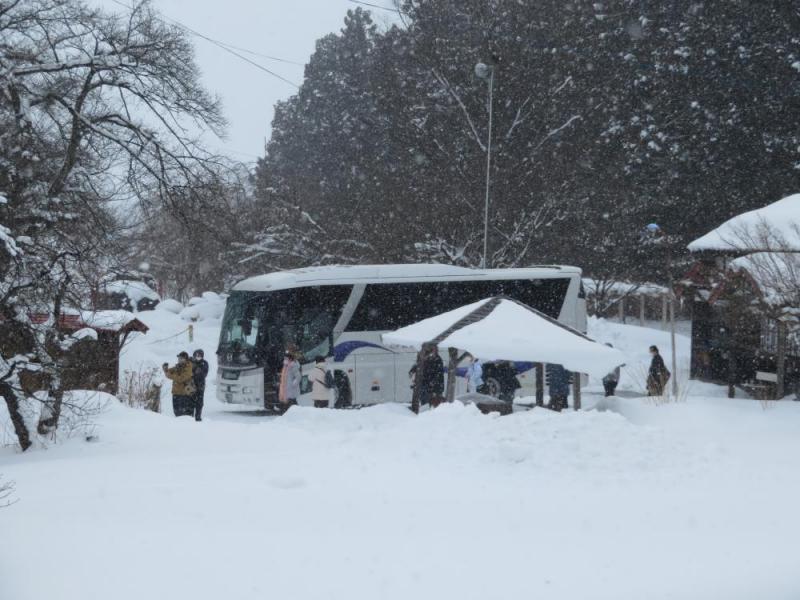 寒い日が続いている。ふと外を眺めると、駅前に大型バスが止まっていた。列車から十数人のお客さんが降りて来た。駅舎をバックに写真を撮る人もいれば、駅舎に走って戻る人もいてバスはなかなか出発できないようだ。そして嬉しかったのが、駅前の看板に近づいていって、スマホをかざしている方がいたことだ。 団体のお客さんが少しは戻って来てくれたのだろうか。山形鉄道のガイドさんは同行したのだろうか。誰もいない駅舎にどんな印象を持ったのだろうか・・・。「また来たいね」などと思ってくれるようなものが一つでも残ってくれればいいな、と思う。
