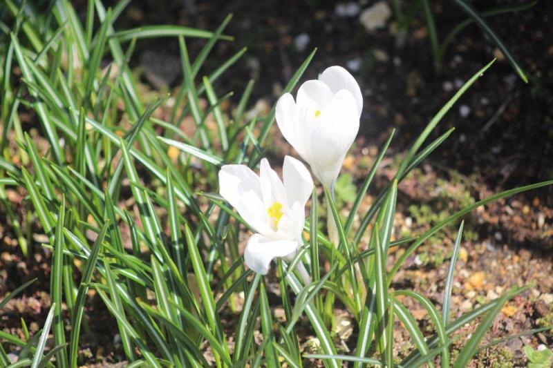 ●我が家に春を告げてくれる花「クロッカス」が咲き終わりました 鮮やかな黄色や白や紫色と咲いていた花も終わり緑色の葉を勢いよく伸ばし陽の光を浴びて来年の準備をしているようです 来年の春まで