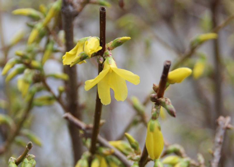 ●我が家の春三番の花は黄色の「レンギョウ」です 今から40年ほど前 山形に通勤していたときに春になると通勤途上の家のあちこちに咲いていた花です 厳しい冬が終わりようやく春なったことを告げるかのように咲いている黄色の花を見てほっとしたことを思い出します 魅せられてその花木を我が家の庭に植えましたが今年も花を咲かせてくれました 今年の春3番目に咲いた花です