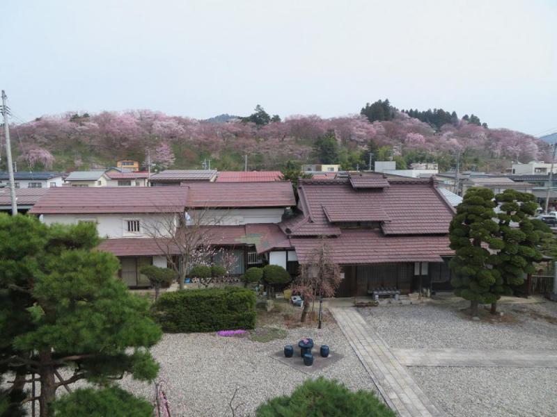 本日は晴れてはいるものの、青空の望めない天気となりました。観測史上最も早い開花となった烏帽子山の桜は、七分咲きといったところです。明日明後日と曇り時々雨の予報が出ておりますので、花見にお出かけの際は念のため雨具を持参されることをお勧めいたします。なお、8日から予定されていた夜間のライトアップも早めて行われるようですので、夜桜見物もお楽しみいただけることと思います。 結城翁生誕100年を記念して植樹されたしだれ桜が、本日ついに開花いたしました。毎年、滝のようにたくさんの花を咲かせてくれます。どうぞ皆様しだれ桜をご覧に、ぜひ記念館にお越しください。 赤湯温泉桜まつりは4月8日から4月30日まで開催され、期間中は18時から22時までライトアップも行われています。詳しくはhttp://www.city.nanyo.yamagata.jp/kankoibento/241をご参考ください。※記念館の開館時間は午前9時〜16時30分(入館受付は16時まで)入館無料・月曜休館 お問い合わせは 電話0238−43−6802まで