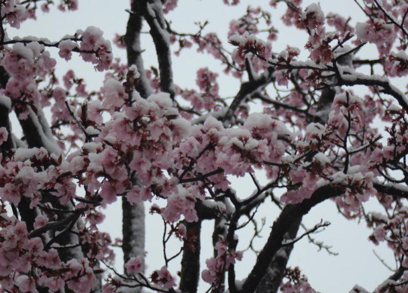 ●桜が満開したと思ったらなんと今朝は雪が積もっていました せっかく咲いた桜が重そうに雪を載せせています 数年前のこの日も雪が積もり驚いたことを思い出します せっかくの日曜日で花見ができそうだと思っていてがっかりした方もいるのではないかと思いますがお昼ごろには晴れそうですからお花見にお出かけしてはどうですか 満開の桜は今が見頃です