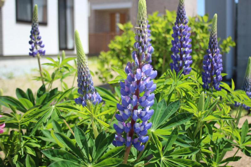 ●「ルピナス」が咲き始めました チョウに似た小花が咲き上がる様子がフジを逆さまにしたようで「ノボリフジ(昇り藤)」とも呼ばれます 品種によっては花穂が60〜70cmほどになるものもあります 古くは食料や肥料として利用され 日本には明治時代に入ってきたそうですが現在では観賞用として楽しませてもらっています