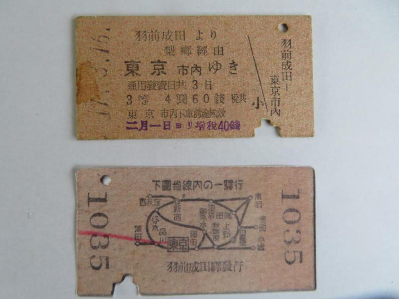 切符マニアが飛び上がって喜びそうな切符を寄贈いただきました。かすれてはいるものの日付は昭和17年3月15日と読めます。見所は「東京市内ゆき」、「3等4圓60餞税共」、「二月一日ヨリ増税40餞」、「下圖省線内」の文字と朱鉛筆が引かれていること。 ウィキペディアによると、東京市は1889年(明治22年)5月1日から1943年(昭和18年)7月1日まで存在し、その後は東京府と統合されて東京都になったと記されています。また鉄道省は、1920年(大正9年)5月15日から1943年(昭和18年)11月1日まで存在していたそうです。 混雑に紛れて寄贈してくれた方から詳しいお話を聞く時間を作れなかったことが残念です。先にいただいた777の切符と共に成田縁に奉納したいと思います。どうもありがとうございました。 【おらだの会】777の切符についてはこちらをごらんください 777の贈り物:おらだの会 (samidare.jp) 長井線を走っていた機関車は:山形鉄道おらだの会 (samidare.jp)