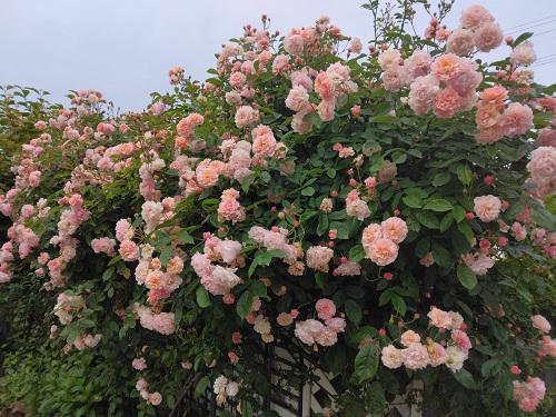 今日は朝から雨!しとしと雨だったので庭にとっては恵みの雨でした。心配なのは、あまりにも早くバラの開花が進んでいること。あっという間に見頃が終わってしまいオープンガーデンがどうなることやら・・・今年は、緑に覆われたバラの花園で癒されています〜♪ (トップ写真)は入り口の“コーネリア”一番開花が早いバラですがもう全開状態です。 今年毎回登場している“サハラ98“のエリア今までにない豪華で色鮮やかさを撮ってみたく毎日スマホでパチリ!でも、ばーばの技術とスマホでは限界です、、、今が最高〜早く来ていただき見て頂いた方がいいですね。 ↓拡大すると。。。 一緒にコラボしている“スヴニール・ドゥ・ドクトールジャメイン”こちらも最高です。もう散りはじめています。 ↓清楚な白がステキな“新雪”、いいとこ撮りです〜♪ ↓“ジュリア"色合いがばーばのお気に入りです〜 ↓“バロン・ジロー・ド・ラン”白く縁どりの変わったバラです。 ↓“チョウジソウ”気づかないうちにこの場所で増えていました。 ↓近くのホームセンターから購入した色々な球根の入った袋の中のひとつ、名前不明の球根がようやく咲きました。調べてみたら“ダッチアイリス”のようです。 昨日は、夫婦で6回目の新型コロナワクチン接種終わりました。今回はクリニックの予約が取れず生涯学習プラザで集団接種モデルナ社製でファイザー社より副反応が心配でしたが、今日は微熱と頭痛が少しで済みました。じーじは腕の痛みで終わり。明日はオープンガーデン初日、皆さんお越しください〜♪