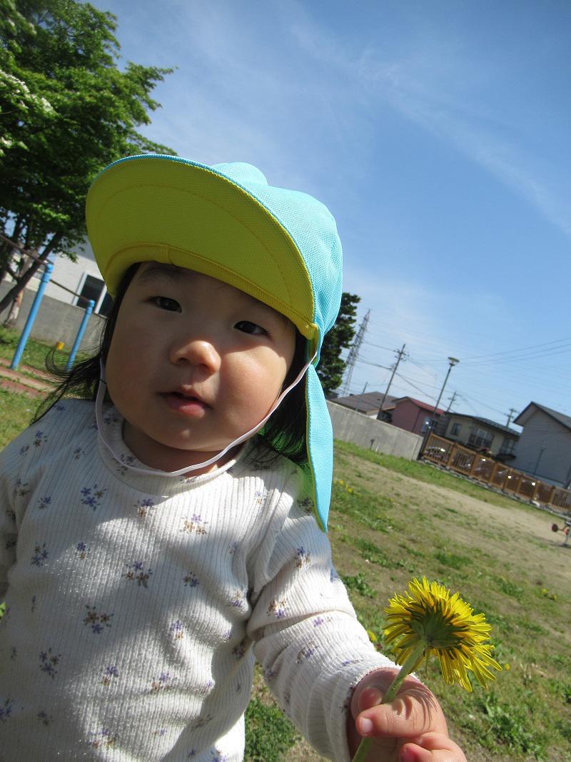 うめ組さんになって2か月が経ち、新しいお友だちもすっかり保育園に慣れて好きなあそびを楽しんでいます。天気のいい日は園庭や散歩にいき、植物や虫など春の自然探しをしています。虫を見つけて「めんめ!」と教えてくれたり、怖がりながらも触ってみたり、自然に触れて喜んでいます。来月は水遊びも始まるので、外遊びを思い切り楽しんでいきたいと思います。