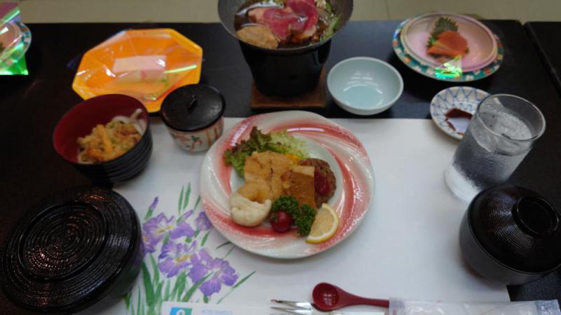 全員無事に宿に到着。みんな元気です!宿は豪華な高級旅館。夕食も豪華です。お肉お刺身まで!みんなで美味しくいただきます!