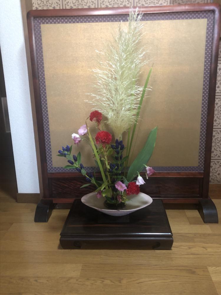 華道の師範代のお客様。お盆の名残の立花との事。素敵です!