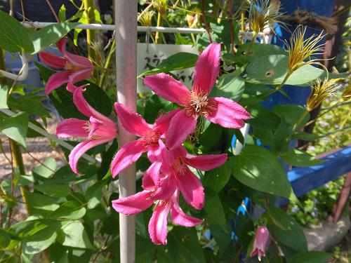 もう9月に入り、今年も3分の2終わってしまったのに暑い暑いの連続、、、来週は雨マークの予報ですがどんだけ降ってくれるのか・・・??? ↓我が家で一番涼しい場所がここです〜蔵の入り口のカーポートの一角で風の通り道にもなっています。午前中早い時間は、涼しくて休憩場所に。。。南の玄関前の花たちもここに避難中デス。鉢の植え替え作業もこの場所で重宝しています。 ミセバヤも元気に花を咲かせています。 どんなに暑くても、元気に咲き続けているバラ!何回も登場している“カーディナルヒューム” ↓蔵の下屋を覆い尽くしています。時々伸びた枝を剪定していてもこの状態です。蕾もたくさん付けてくれて花も咲き続けている我が庭の一番の優等生です!