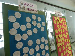 運動会まであとわずか、応援練習や放課後の係活動も進んでいます。今週は運動会期間中の友達のがんばりや良いところをたくさん見つけてみんなに教えていく「よいことまりいれ」が行われています。「大きな声をだしていてすごい」「たいこをがんばってたたいていた」「ふりつけをしんけんにしていた。まねしたい」等々、よいことを書いたまりがたくさん入れられています。