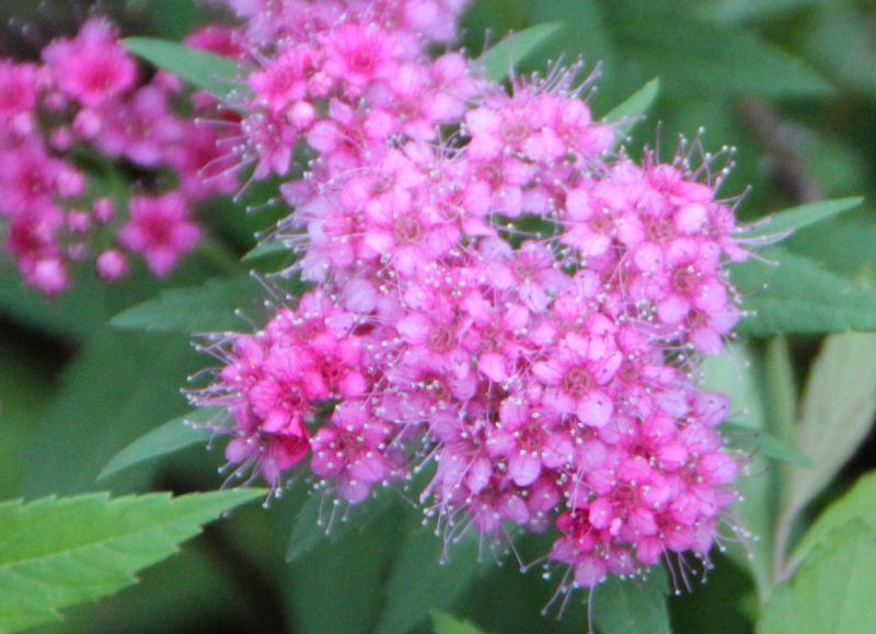 ●道路沿いの庭に小さなピンクの花を集め雄しべのようなものが伸びている花が咲いていました「シモツケ」でしょうか ネットで調べてみると初夏に咲かせますとの説明がありました 先日このブログをいつも訪問してくださっている方から「植物の春化現象」を教えてもらいました 刈り込んでいる枝から新しい芽が出て咲いているのかもしれません それとも今頃咲いているので別の種類の花でしょうか とても可愛い花です