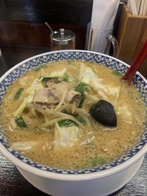 小龍姫(0238-43-5063)の味噌ラーメン。あっつ熱の野菜とまろやかな味噌スープ。私は辛みそなしでいただきます。
