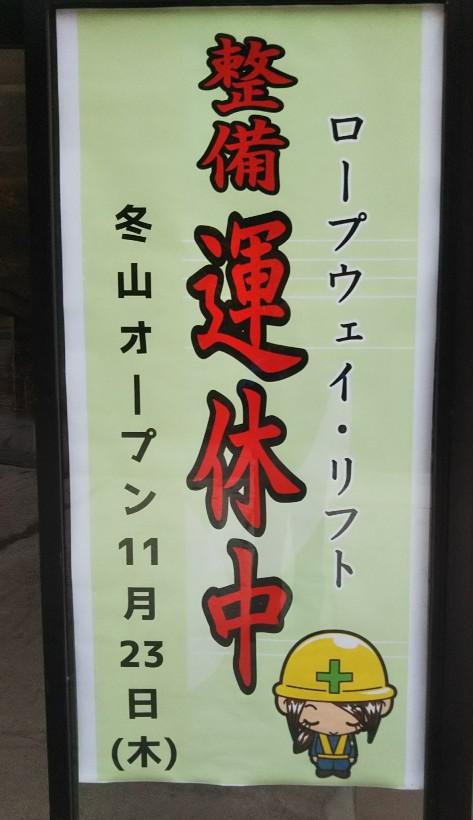 天元台高原は、この日曜10月29日をもって夏山シーズンを終了し、スキーシーズンに向けて、ロープウエイ、リフトともに整備運休にはいりました。ウインターシーズンのオープンについては、11月22日10時から安全祈願祭を行い、その後プレオープン、翌日23日からを予定としてます、早いですが雪があればの話ですよ・・今年の雪はどうなんでしょうかね・・ところで米沢スキー場の9月4日ブログで今シーズン、シーズン券の販売は中止の案内がありました・・毎年ホームゲレンデに米沢スキー場シーズン券購入してましたが・・残念無念ですね、今後どうなるのでしょうか米沢スキー場運営は??