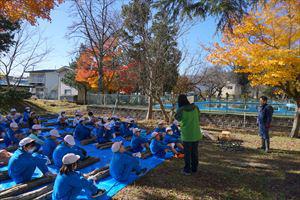21日にキノコの菌打ち体験を全学年児童が行いました。長井市役所農林課の方々のご指導でふるさと森林組合の方々のご協力を得て行ったものです。楢の木に穴をあけていただいたもの(ほだ木)に、しいたけ菌を植え付けた「種駒」と呼ばれる小さな筒状の木を穴に入れて、ゴム製のハンマーで打ち込みます。低学年も上手に打ち込んでいます。説明をよく聞いて怪我無く作業を行うことができました。プール脇のもみじの木の近くで作業を行いました。直射日光の当たらないところで保管し、しいたけが出やすく組みなおす作業も行って、しいたけが出るのを待ちます。収穫できるのは来年以降になるということです。農林課の皆さん、森林組合のみなさん、ありがとうございました。