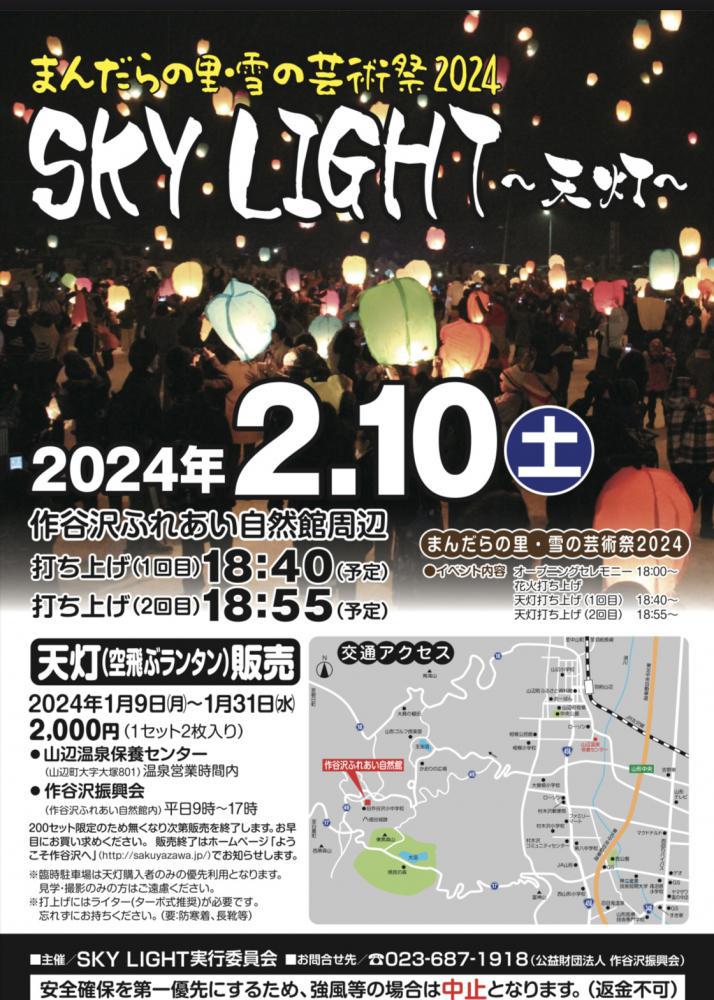 久しぶりの更新になってしまいました!コロナ禍を経て、昨年より再開した『まんだらの里 雪の芸術祭』を今年度も行うことになりました!!地区外の方からも人気の「SKY LIGHT」昨年よりも個数を限定しておりますので御希望の方は販売開始日以降、お早めに!!ちなみにイベントでは他にも開会セレモニーから、花火の打ち上げ・ミニコンサートも予定しております。