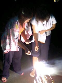 最上町高校生ボランティアサークルつくし会では夏休みに前森で合宿を行ないました。向町の中央公民館から合宿場の前森高原牧場まで、炎天下の中、沿道のゴミ拾いをしながら歩いたのね。かかった時間、二時間弱(>0<)その間お嬢さん方はずっとしゃべくりまくってた。高校生はタフだね〜!写真は夜の花火。