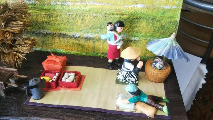 出生率が毎年減少していて、今後日本はどうなっていくのと心配になりますねーー、この出生率は「人口1,000人に対する1年間の出生数の割合」を示す数値です、日本においては、毎年10月1日時点の人口をもとに計算されるとあります。この普通出生率よりも注目される機会が多いのは、「合計特殊出生率」で、「15〜49歳の女性人口」をもとに計算されるもの・・・導き出された数値は「1人の女性が生涯を通じて産む子どもの数」となる。私の親世代は昭和戦前生まれ、どこの家庭も子だくさんで5人6人は当たり前の時代、私の母は8人兄弟で、うち2人は生まれて間もなくなく亡くなったということです。7歳までは神の子、医療が行き届かない時代で弱い子はなくなるという時代でした、7歳を過ぎるとようやく落ち着いて、もう大丈夫・・神の子から人になるとして・・7,5,3歳の節目にお祝い事ありました。そんな、子だくさん故、親は仕事で忙しく、赤ん坊はイチコに入れて動けなくし、目の届く範囲で田んぼの隅に、唐傘射して置いておく・・母の下の子は双子でしたので一人はイチコで動けなくして、一人は姉がおぶって子守していたそうです・・私の母はそんな姉の姿みて、早くおんぶしたいと言ってましたが、まだ小さく・・出来なかったのが残念だったそうです・・お風呂も遊びも姉がしてくれて、まるでお母さんという感覚だったそうです・・・・母は姉が嫁に行くときに、大泣きして・・行かないでと母に頼んだそうです・・昔おばあちゃんに聞いたことがあります・・この世代の子は、兄や姉の背で育っていくのが当たり前、その分兄弟の結びつきはいまよりずっと強かったものでしょうね・・昨日から”なせBA”でART MEET OKITAMAが開催されてます、そこに出した昭和30年代前半までの田園風景一部です