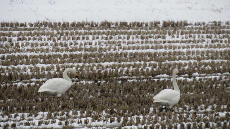 ●早朝や夕方に隊列を組んで独特の鳴き声を出しながら飛んでいる白鳥を見ることができるようになりました 例年にない暖冬で白鳥が北に帰り始めているというニュースが報道されていました 田んぼで餌をついばんでいる白鳥もたっぷりと栄養を蓄えて北帰行の準備をしているのでしょうか しっかりと餌を食べて無事に北へ帰れるように祈りたい そして来年も元気に戻って来てください