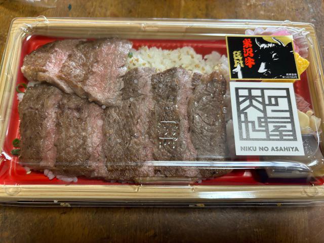 肉の旭屋(0238-43-2639)の米沢牛ステーキ弁当。この日曜日、赤湯の街は混雑するだろうと思い弁当を用意しました。お店の中もこみこみ。予約していて良かった〜〜〜。