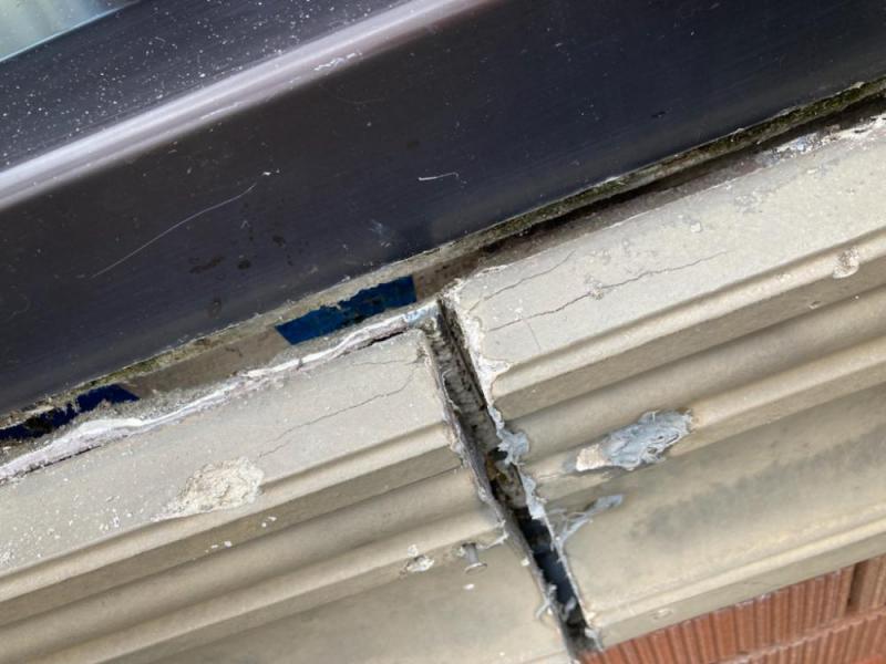 幕板のジョイントのみ打替えに伺ったM様邸翌々日には雨仕舞改善で板金工事を手配していたのでその前に現調がてら既存シールの撤去へ。 むむむずいぶん幕板飛び出とる…。 幕板上端のシール切れ個所から笠木からの伝い水が内部へ。 今回はこの雨水を切るように上端に板金被せつつ笠木の中に立ち上げる計画だったのですがちょい手遅れ。 下がり壁のタイルも白華が見られるため中に間違いなく廻っていそう。 自分の調査では下地の木笠木の天端から100ミリくらい腐朽躯体天端からちょい腐朽でもビスは効くから生きてはいる。そんな感じ。 とりあえずお客様に全部ご説明差し上げて雨仕舞を改善すればこれ以上の腐朽は無いとご納得して頂いた上で躯体までビス止め後板金施工となりました。とりあえずご安心いただけて良かったです!