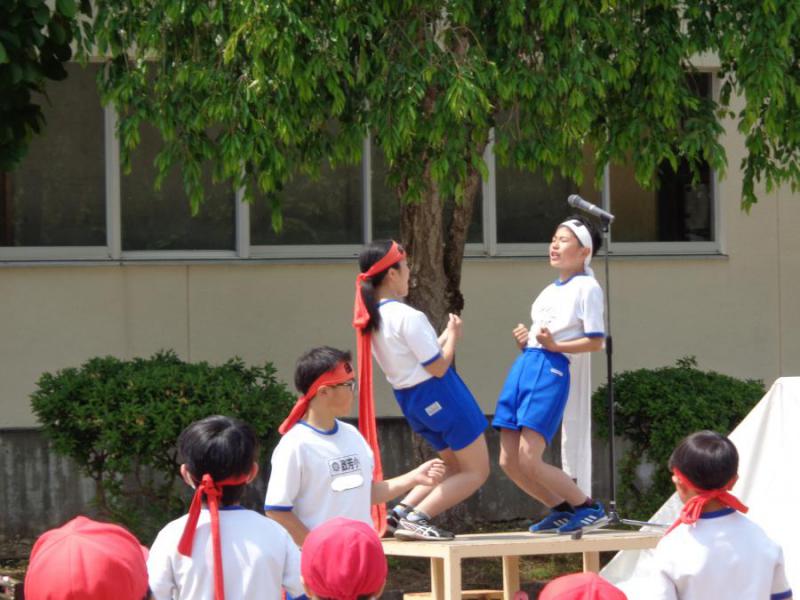 運動会までもうすぐです。今日は、2時間目に開閉会式の行いました。練習が始まったころには、さわやかな青空が広がっていました。はじめの言葉は1年生。大役ですが、本番でも大丈夫でしょう。準備体操は、日頃から取り組んでいる軽快な音楽に合わせての「リズム体操」。そして、両軍組頭による「がんばり宣言」は、本番さながらの力強い応援も。大会当日が楽しみです。最後に、実行委員会の取り組みも紹介します。大会本番までの頑張りが「見える化」されています。チームワーク賞の得点も始まったばかり、まだまだこれからです。さて、昨日の天気祭りの効果がありますように!