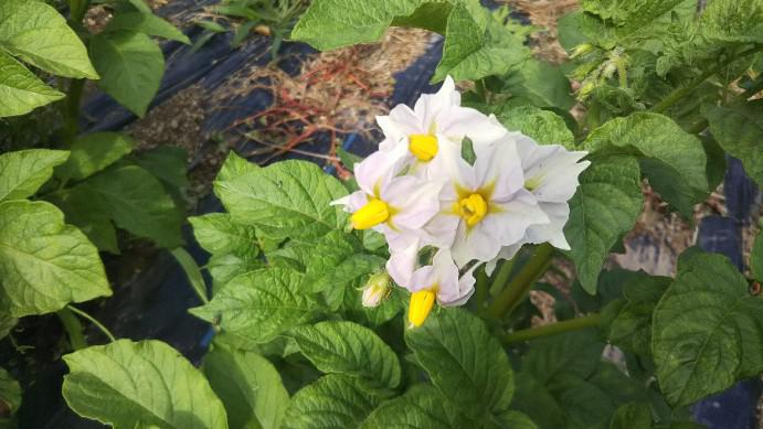 我が家の家庭菜園、ジャガイモの花が咲き始めました、まずは白色の花、今年も4種類のジャガイモ植えました。収穫時期はお盆の頃ですね、収穫の一部は、冷蔵庫に種イモ用として残して来年使用します。今年は昨年の芋、だいたい4年ほど繰り返し、その後種芋購入してを繰り返します。