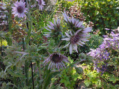バラ庭から、宿根草の庭へと目覚めたじーじ、録画を見たりガーデニングの本を見たりで気に入った宿根草を冬のうちにネットで手配! その中で、どのような花が咲くのか全然想像できないトゲがすごい花です! 『ベルケア』パープレア。。。 オープンガーデン中はほとんどの方が花を見れず残念でした・・・ ↓6/15に初めて開花、一個だけど感激〜!わくわくしながらパチリです。 ↓翌日6/16は、これだけ、、、 6/17は朝からきれいな青空で何個か開花していました〜♪ようやく花姿が現れて来ました! まだ伸びきれない苗はこんな感じ・・・ ↓今日6/18には、ちょっと違う趣きが感じられます。(観察日記みたいですね) 終わった後、来年に向けてどのように手入れしたらいいかこれから調べてみます。 昨日アップした”アカンサス”は秋口に根元からカットするだけの手の掛からない花ですが、この新人さんはトゲが凄いのでどうなるやら・・・・