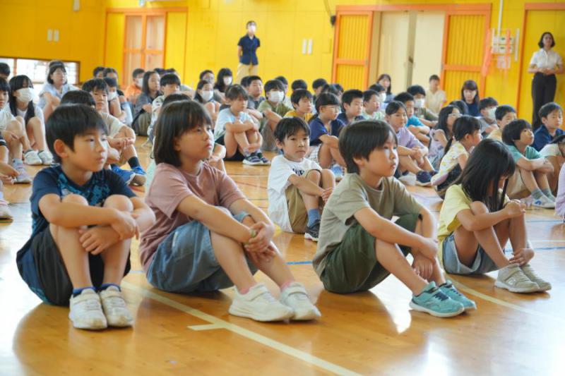 本日は、1学期の最終日。朝の時間に終業式を行いました。私からは、今年度のテーマ「一人ひとりが自分の成長を実感し、笑顔あふれる学校へ」をもとに、1学期を振り返って話をしました。あわせて、始業式の時に伝えた「毎日、元気に登校する」ことと、「まわりの人を大切にする」ことについても。そして、児童代表は3年生。頑張れたことを実感できることは成長の証です。校歌は3番まで、しっかりと歌いました。1年生も…、覚えていました。最後までしっかり歌うことができました。終業式に続いては、ALTのニコ先生とのお別れの会。昨年度から本校職員として勤めていただき、子どもたちと良い関係を築いてくださいました。代表児童の6年生からは、英語での感謝の言葉が。これもニコ先生との学習があったからこそ。ニコ先生、ありがとうございました。そして、次のステージでも明るく元気に頑張ってください。