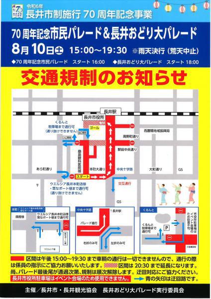 ●70周年記念市民パレード&長井おどり大パレード 交通規制のお知らせ