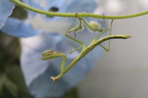 ●「カマキリ」が宙ぶらりんで木の枝にぶら下がっていました 夏が終わると「カマキリ」は交尾の時期を迎えます 交尾が終わるとオスはメスに食べられてしまうという不思議な習性があるんだそうです さらに産卵してもほとんどは天敵に食べられるとか この写真のカマキリは食べられるオスでしょうかそれとも食べるメスでしょうか