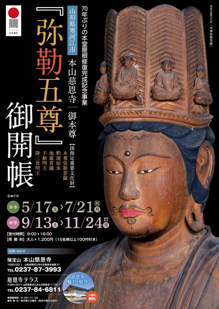 慈恩寺本堂茅葺屋根修繕工事完了を記念し、本山慈恩寺では来年、11年ぶりに御本尊を御開帳いたします。来年は2回特別公開を実施しますので、長い期間御本尊をご覧いただけます。 期間令和7年5月17日(土)〜7月21日(月祝)9月13日(土)〜11月24日(月祝) 拝観料大人 1,200円(15名様以上1,100円)