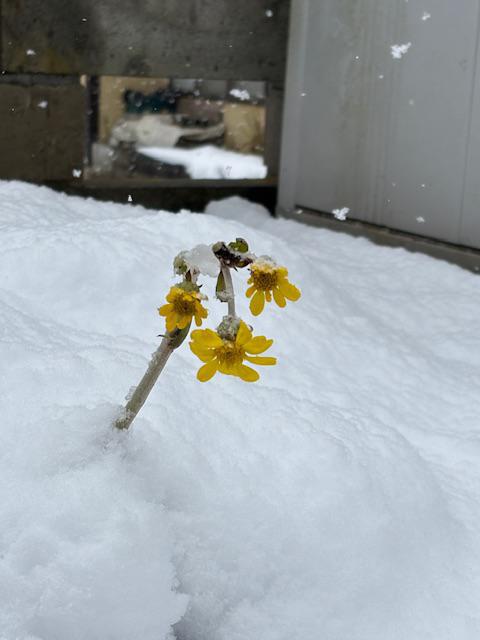 石蕗の花が雪に埋もれて...