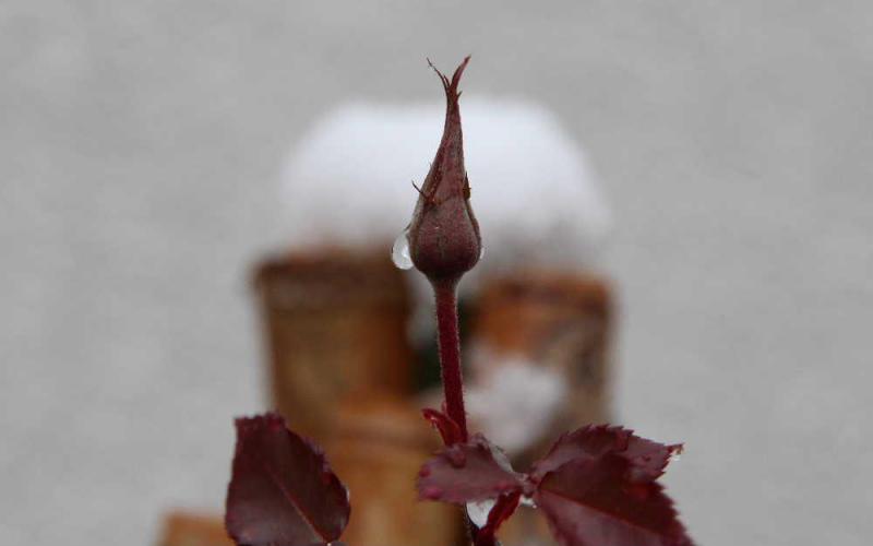 ●大雪も心配されましたがたいした積雪にならずにすんでホッとしています 冷たい雨にうたれたバラのツボミですが今年はもう花がさくことはないだろうけど最後の頑張りで花を咲かせてくれないでしょうか
