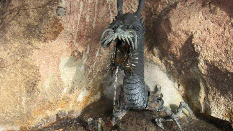 ●手水舎で参拝前に手や口を清める手水が龍の口から流れ出ています 冷たそうですが清々しさも感じる風景です 手水の起源は伊勢神宮の御手洗場だと知りました