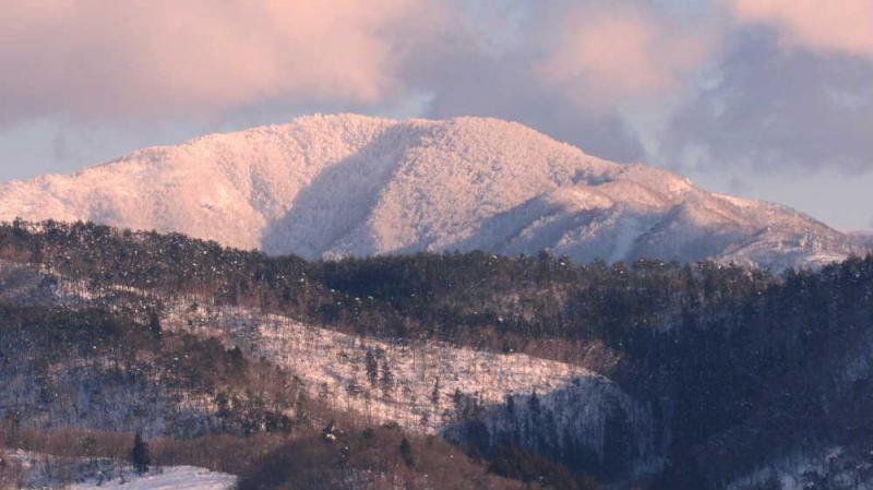 ●夕日に染まる雪山 今朝はまた雪が降り始めました 先日2日ほど穏やかな天候となり夕方にはにその空が夕焼けに染まりました その陽の光が東の空の雪山を赤く染めました 真冬の中でつかの間の穏やかな一日となりました 今朝はまた冬に逆戻りです