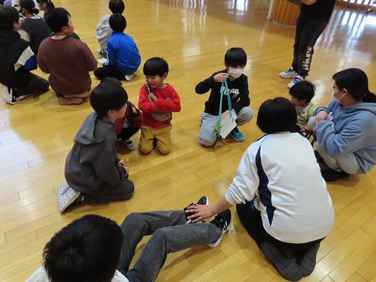 1月24日、今年4月に本校に入学する16名の年長さんが、一日入学を体験しました。5年生のお兄さん、お姉さんと一緒に学校を探検し、それぞれの場所で出されるミッションに挑戦しました。一生懸命に考え、元気に答える年長さんに、5年生もたじたじでした。手をつないで歩いたり、笑顔でおしゃべりしたりと、あちこちに温かいほのぼのとした空気が流れていて、心が癒されました。まだまだ寒い日が続きますし、インフルエンザやコロナなどの感染症も心配されます。残り少ないこども園生活を元気に過ごし、ニコニコ笑顔で第一小学校の校門をくぐって入学する日を楽しみにしています。5年生の皆さん、頼もしい姿を見せてくれてありがとう!