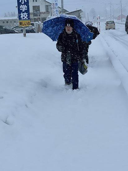 1月29日、今朝は久しぶりの大雪になりました。しかも短時間で大粒の雪が「もさもさ」降ってきたので、歩道もかなりの積雪があり、一っ子達は本当に大変な思いをして登校してきました。寒さにも大雪にも負けないたくましい一っ子達に大きな拍手です!!明日も大雪の予報のようです。安全に気を付けて登下校してほしいと思います。前が見えないくらいの雪が降る中、雪かき用スコップを手にした4年生と5年生が、校門前通路と昇降口前を除雪してくれました。みんなのために働いてくれた皆さん、本当にありがとうございました。