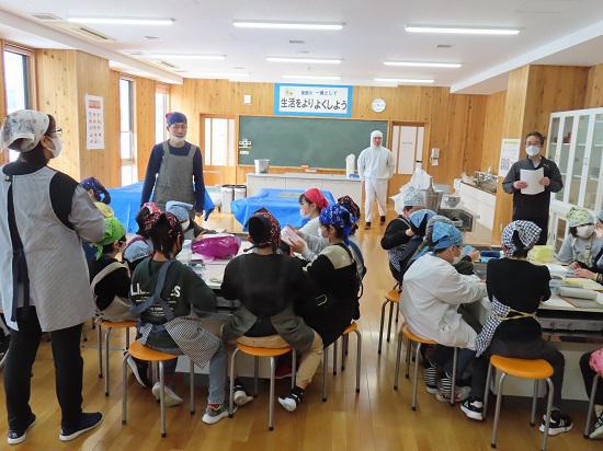 2月14日、白鷹農産加工研究会の鈴木先生をお迎えし、3年生が豆腐作りに挑戦しました。3年生は今年、畑の学習として大豆を植え、収穫しました。その大豆から豆腐ができることを知り、今回の学習へつながりました。時間の関係から、豆腐作りの途中の工程からでしたが、どのように豆腐になるのか、見たり聞いたりしながら詳しく学ぶことができました。出来上がった豆腐は、一人2丁ずつ、お土産として家に持ち帰りました。試食した一っ子たちからは、「おいしい!」「おうちの人が喜ぶぞ!」など、満足した感想を聞くことができました。自分たちの学習活動と生活とが結びつく貴重な体験となりました。