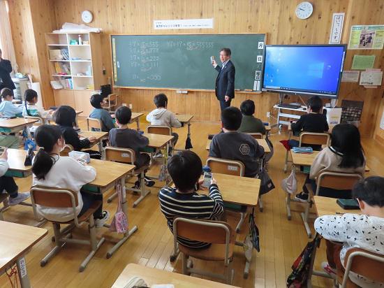 2月26日、飯豊町教育委員会の学校教育指導員である竹田俊章先生に、算数の示範授業を見せていただきました。竹田先生は元校長で、普段より「わかる楽しい授業」を追求され、さまざまな教育実践を残されている先生です。私たち教職員も、授業づくりや子供理解をはじめ、教員の資質向上に向けた諸取組について、ご指導いただいております。今年度も4月から、毎週火曜日に本校においでくださり、私達の指導力向上にお力添えいただいています。今回は、3年児童を対象に、算数の授業を見せていただきました。算数への興味関心が大きな課題になっているのは、山形県だけでなく、本校も同じような傾向が見られます。その課題を解決すべく、深い教材研究に裏打ちされた教材教具の準備、児童の思考にそった授業展開、子供の声をつなぎながら深い学びへといざなう教師のコーディネートなど、大変学びの多い示範授業でした。子供たちの問題解決に向かう真剣なまなざしや、制限時間を過ぎても問題にチャレンジしている姿などから、「もっと解きたい。」「正解を自分の力で導き出したい。」という強い意欲を感じました。一っ子たちも私たち教職員も、たくさんの財産をいただき、貴重な一時間になりました。次は、3月4日。6年生を対象に授業をしてくださいます。今からとても楽しみです。皆様に問題です。「111111×111111」を、電卓を使わず、板書の内容をヒントに答えを出すことができますか?これは実際に子供たちが挑戦した問題です。
