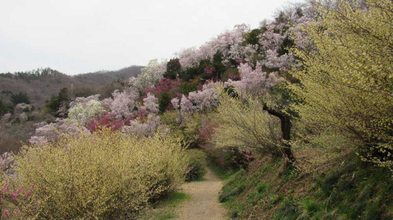 ●花見山公園その2 鮮やかな菜の花の黄色 ボケのオレンジ色 桜のピンク 若葉の黄緑と春爛漫の咲き乱れる花木に心を奪われました