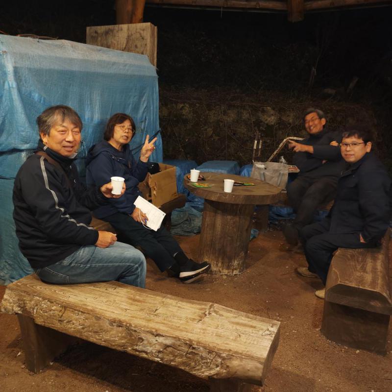 この一週間あまり、私たちの目を楽しませてくれた岩部山の桜も殆ど散ってしまいましたね… 25日、体育推進員総会のあとに、ライトアップ最終日を迎えた岩部山にお邪魔してきました☆(体育推進員会の皆様、遅い時間まで会議お疲れ様でした!今年も地区の体力向上、スポーツ振興にご協力をよろしくお願い致します) 風が冷たく寒い花冷えの夜でしたが、東屋には地元応援隊のお二人と地元の名士ご夫妻が出迎えてくれました(〃'▽'〃) 週末の夜、疲れた心と身体にライトアップされた桜とおふるまいの温かいコーヒーとお集まりいただいた皆様の笑顔が沁みました(*^-^*)