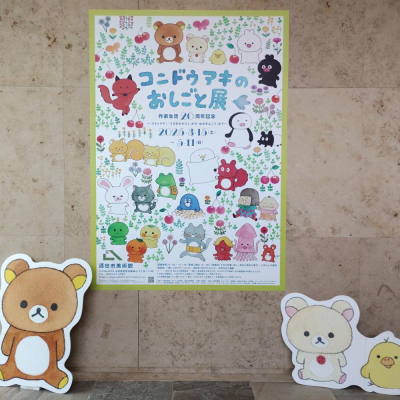 リラックマでお馴染みのコンドウアキさんの展覧会が、酒田市美術館で開催中です。(5/11まで)ゴールデンウィークのご予定がまだの方はいかがでしょうか(*^-^*)?