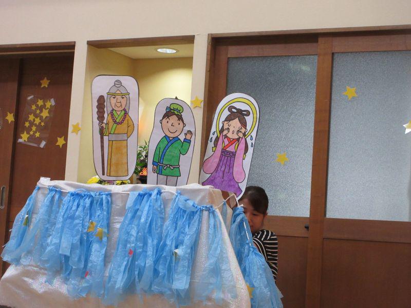 7月7日(月)に七夕会をしました。七夕の由来をペープサートで見たり、「七夕」の歌を歌ったりしました。お昼ご飯はお星さまの形のコロッケ。一日を通して七夕を楽しみました。皆さんの願いが叶いますように・・。