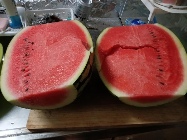 我が家の家庭菜園、今年は小玉スイカと大玉スイカ植えました、合わせて4本の苗・・植えた後に兄が2本持ってきて植えたがその2本は植え時期が悪くてその2本は枯れて・・一本は生育不調で実がつかないでと半分はダメでした・・の頃の3本も雨不足で出来が悪いです・・そんでも大玉2個目の収穫、程よい大きさになり切ってみたら、いい色で、甘みもあるしでいい感じです・ それに意外なのが、畑の真ん中と、冬に生ごみ捨ててる場所からも小玉スイカが芽出して成長してますがな・・まだ小さいけども小玉君よ頑張ってほしいです・・収穫できるの楽しみ・・