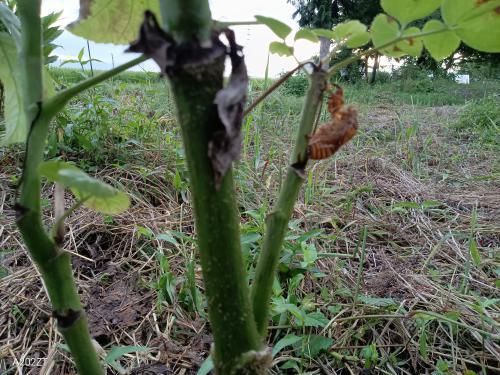 昨日仕事終わって家の北側草むしり、するとウドに久しぶりセミの抜け殻ありました、小学生の頃は虫好きで、夕方家の周りの木に登ってくる蝉を捕まえて、家の中の植木を入れて早朝羽化したセミをよく見てましたね・・羽化した後はまた植木を外に戻してと・・よくそんなことをしてました・・今年は例年よりセミ少ないようです・・寝苦しいところにさらにセミの声が夏を増長させてましたが・・好きでしたね・・特にうるさいのがクマゼミということですが、東北では見れませんね・・熊セミは名の通り体長が約50mmで、日本で一番大きなセミと言われています。クマゼミは「シャッシャッ」という鳴き声である。この辺でも様々な種類のセミが生息し、夏の初めにニイニイゼミにはじまりアブラゼミ、ミンミンゼミ、ヒグラシ、ツクツクボウシなどとなる・・